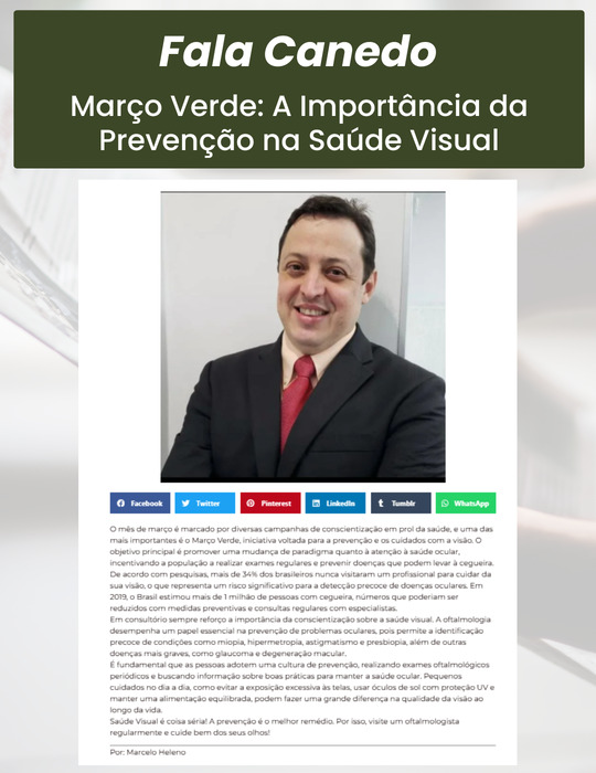 Participações em entrevistas, reportagens e programas jornalísticos que reforçam a autoridade do Dr. e seu compromisso em levar informação clara e confiável sobre saúde ocular ao público.